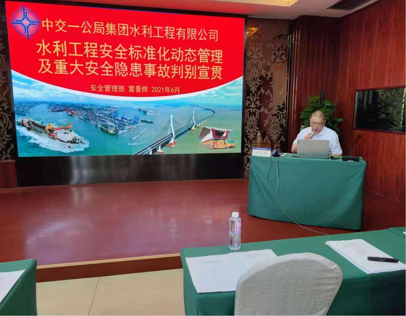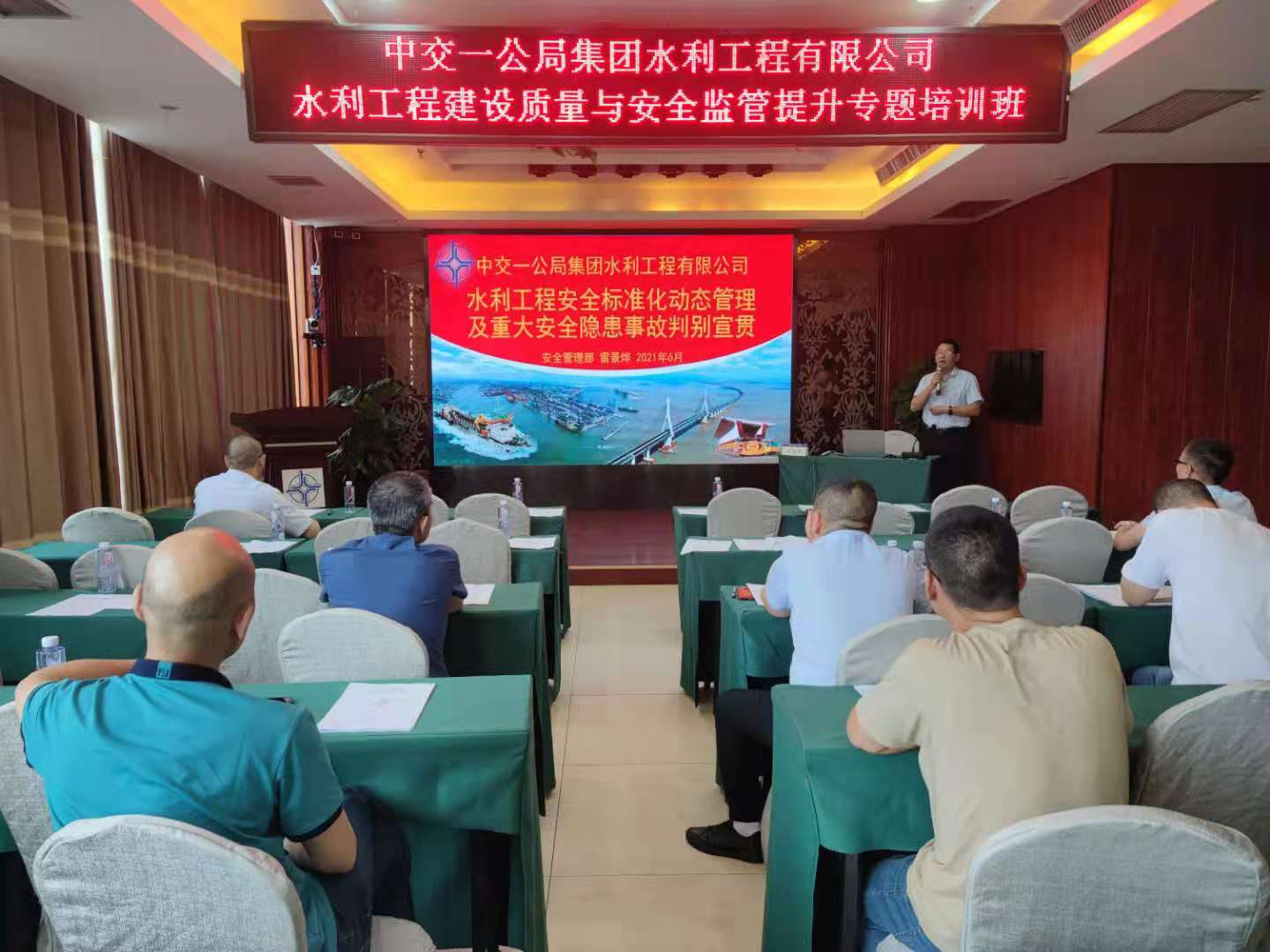 会议最后,安全管理部负责人对《水利工程安全标准化动态管理及重大安全隐患事故判别宣贯》进行了培训,从隐患类别、内容、易引发事故类型、判定依据等几个方面,并以具体事例为例,为大家详细讲解了重大安全隐患的判别方法。