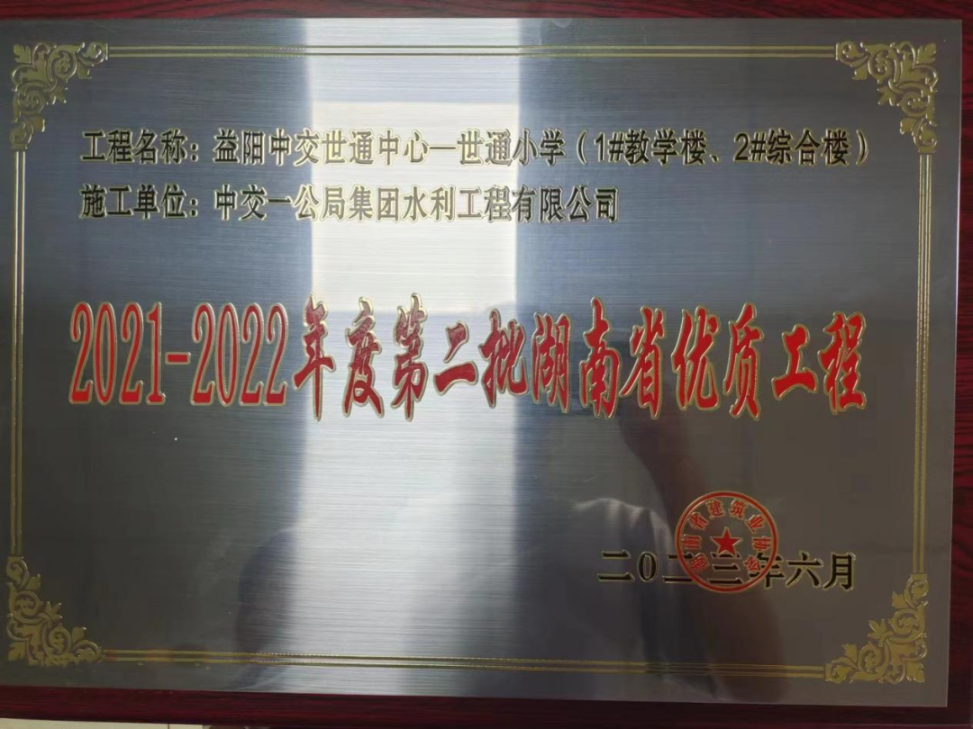 近日,在2021-2022年湖南省第二批优质工程评选活动中,必赢体育平台中国登陆入口,益阳市中交世通中心—世通小学项目以优质的工程实体、完善的管理体系、高效的组织分工荣获2021-2022年度第二批湖南省优质工程奖。
